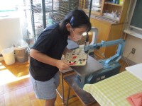 電動糸のこを使って、パズルの制作をしています。完成した人は、パズルに挑戦です。友...