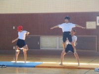 体育館では、マットを使って運動会で行う技に取り組んでいます。さあ、どんな技でしょ...
