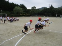 リレーのバトンパスを確認したあと、本番さながらに走ってみました。うまくいったとこ...