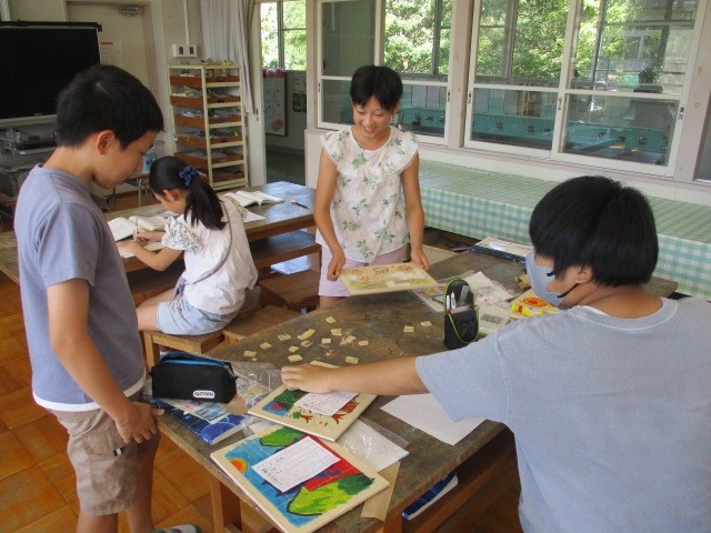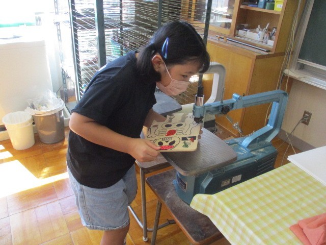 電動糸のこを使って、パズルの制作をしています。完成した人は、パズルに挑戦です。友達のパズルもやってみよう!