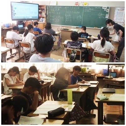 高学年の学びの様子です。6年生の国語では、5年生までに学んだ漢字を使い、物語文の創作に挑戦しています。自分の言葉で思いを表現する楽しさを感じながら取り組んでいました。