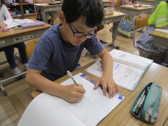 くり上がり、くり下がりのあるひっ算の足し算と引き算の学習です。計算間違いのないよう慎重に考えています。