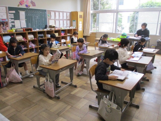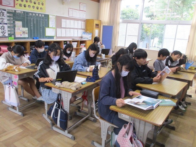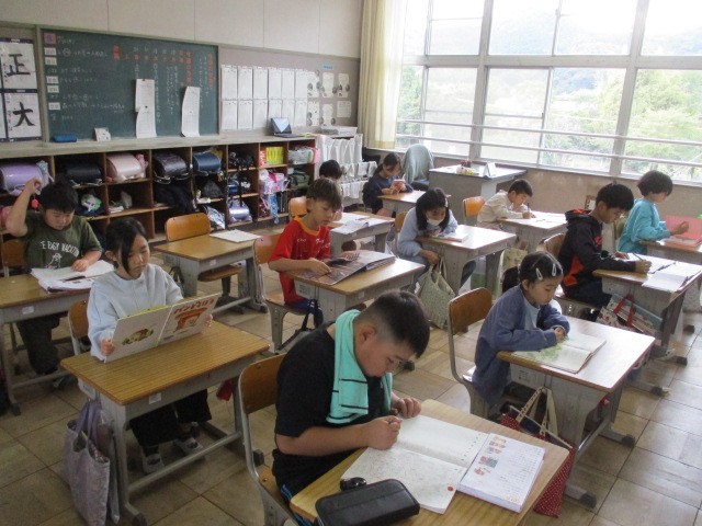 池野小学校では朝の活動時間があります。読書をしたり、連絡帳の確認をしたり、調べ学習をしたりと、一日を落ち着いてスタートする準備ができています。