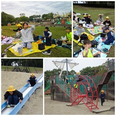 その後、「祖父江緑地公園」でグループで仲良くお弁当を食べ、広い公園で力いっぱい、みんなといっしょに体を動かすことができました。