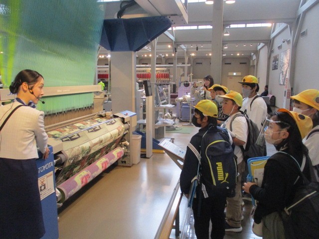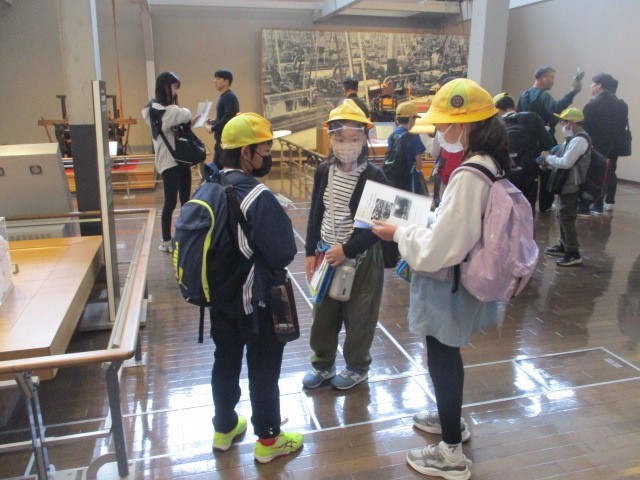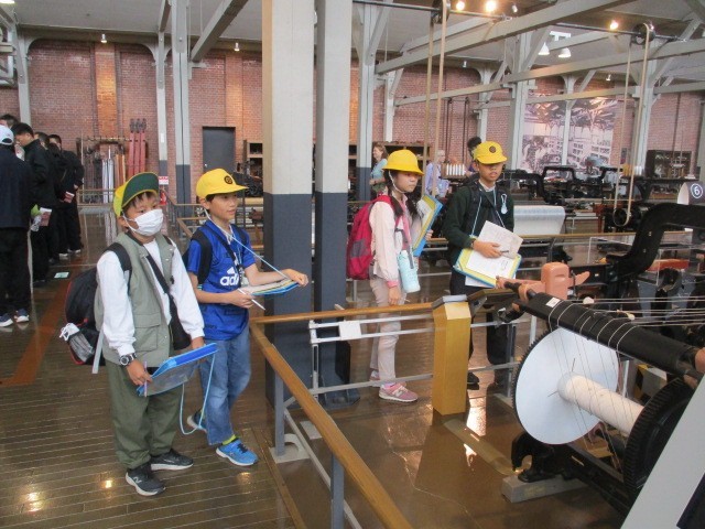 今日は5年生の秋の遠足でした。社会で学んでいる自動車についてトヨタ産業技術記念館で見学をします。まずは紡績産業として発展していた繊維機械館から見学です。