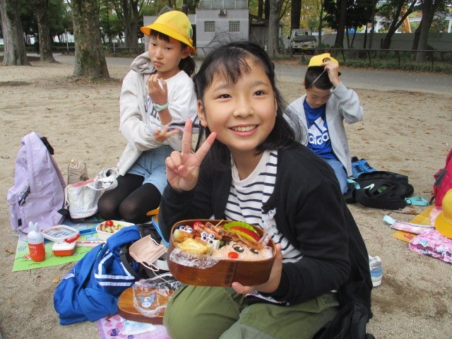 白川公園で楽しみにしていたお弁当です。おやつも食べておなかいっぱいになったら公園の遊具でたくさん遊びました!