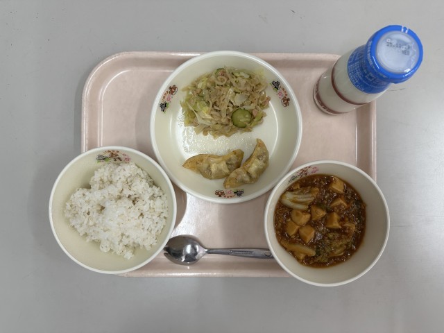 ・麦ごはん  ・牛乳  ・麻婆白菜  ・揚げ餃子  ・切り干し大根のツナ和え