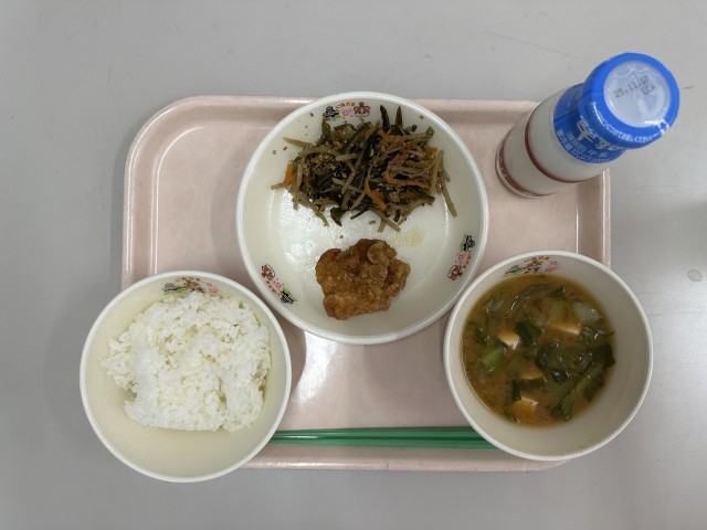 ・ごはん  ・牛乳  ・鶏肉のレモン煮  ・茎わかめのきんぴら  ・チンゲン菜入りみそ汁