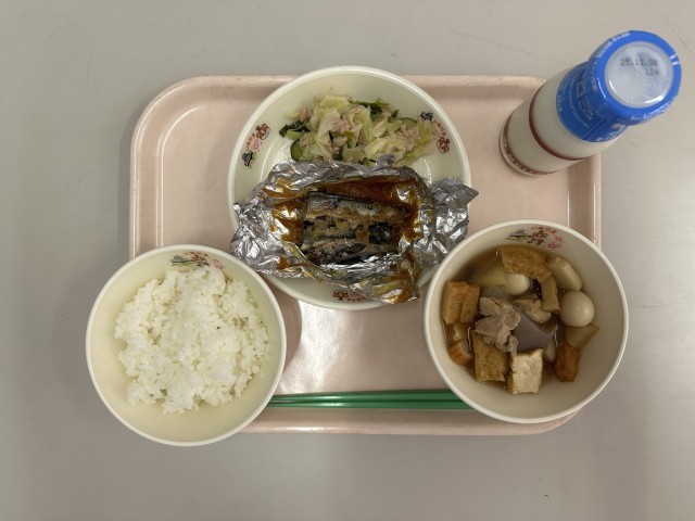 ・ごはん ・牛乳 ・関東煮 ・さんまの銀紙焼き ・ツナとわかめのサラダ
