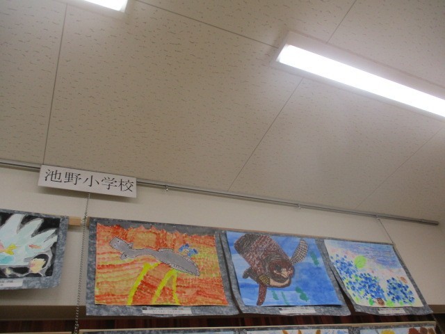 東コミュニティ芸術祭・作品展が12月1日(月)午後2時まで開催されています。池野小学校の児童作品も展示されています。