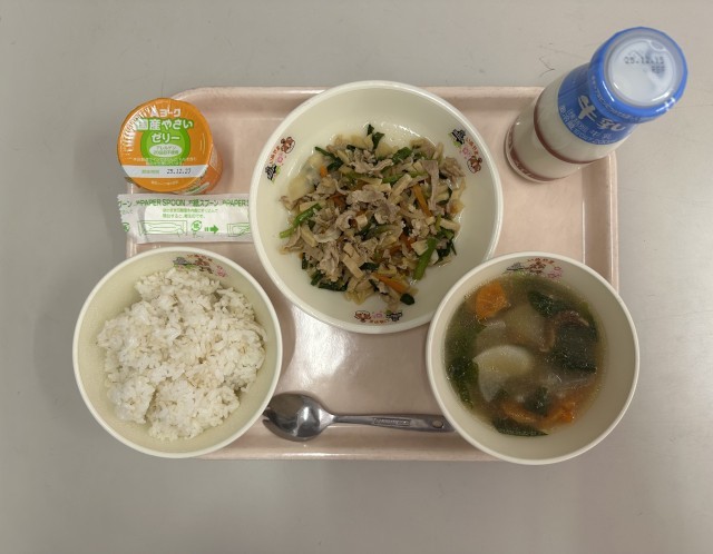 ・麦ごはん  ・牛乳  ・ピビンバ  ・米粉のトックスープ  ・野菜ゼリー