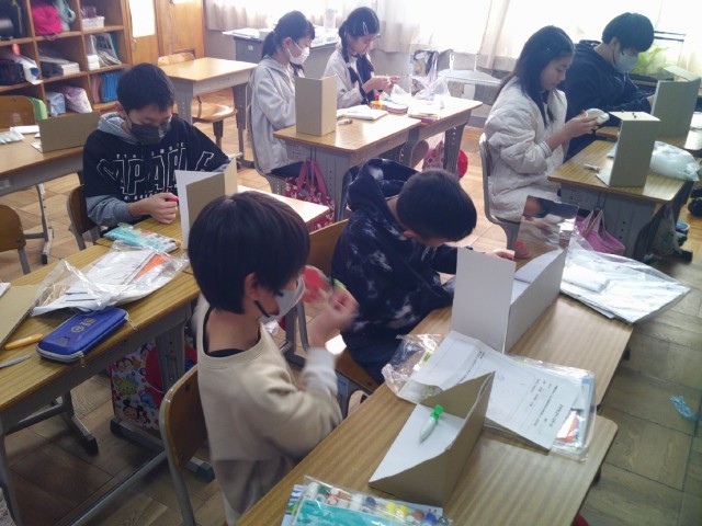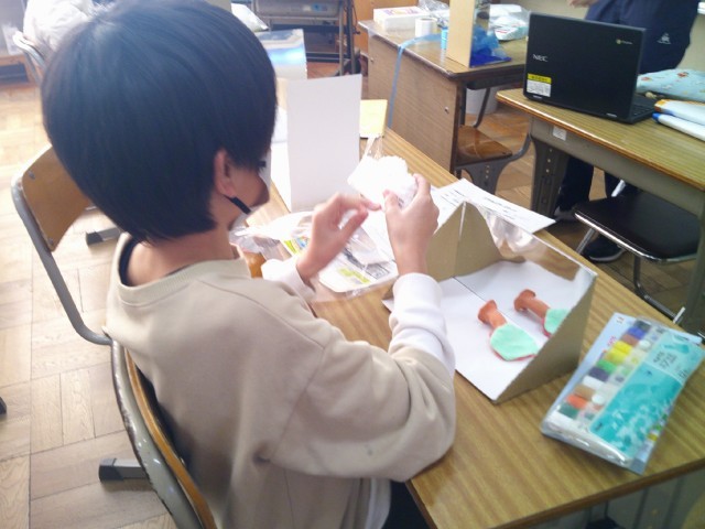 ミラー工作用紙に紙粘土や針金で作った飾りを写し、数が増えたり裏面が見えたりして面白い作品になります。みんなはどんな工夫をしたのかな?完成が楽しみです!