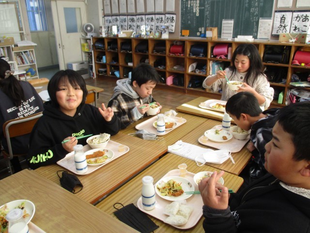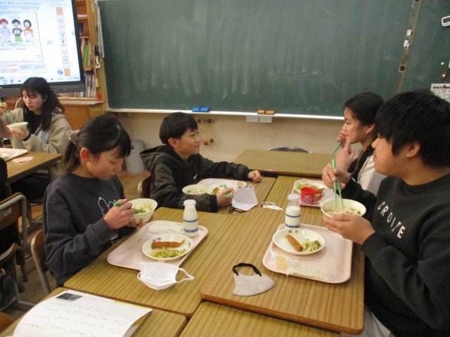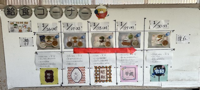 全国学校給食週間だったこの一週間は、給食が始まったころから現代までの献立を出しました。時代とともに変化してきた給食を食べて、「今までに食べたことないものもあったけど、全部おいしかった」や、「くじらをはじめて食べたから、とっても印象に残ったよ」という声を児童から聞くことができました。