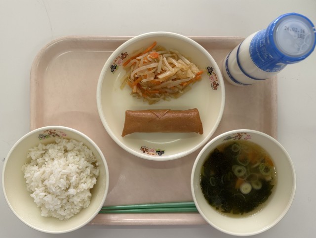 ・麦ごはん  ・牛乳  ・春巻き  ・大根の中華和え  ・わかめスープ