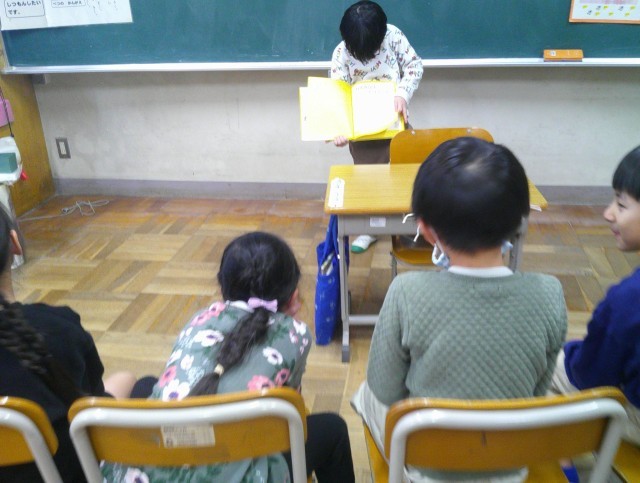 低学年の子たちも、古川先生の読み聞かせをしっかり聞いています。