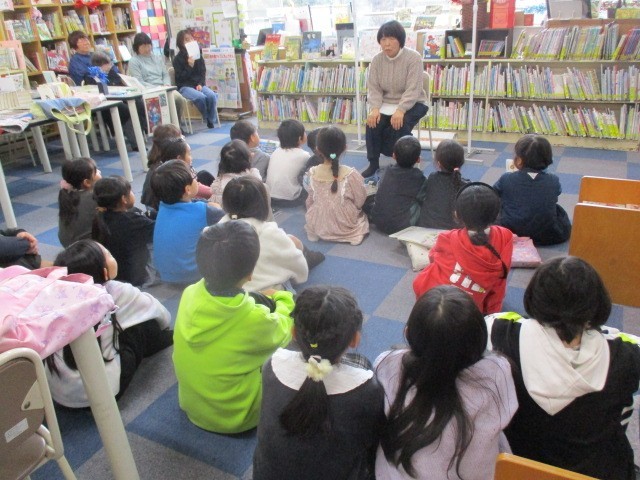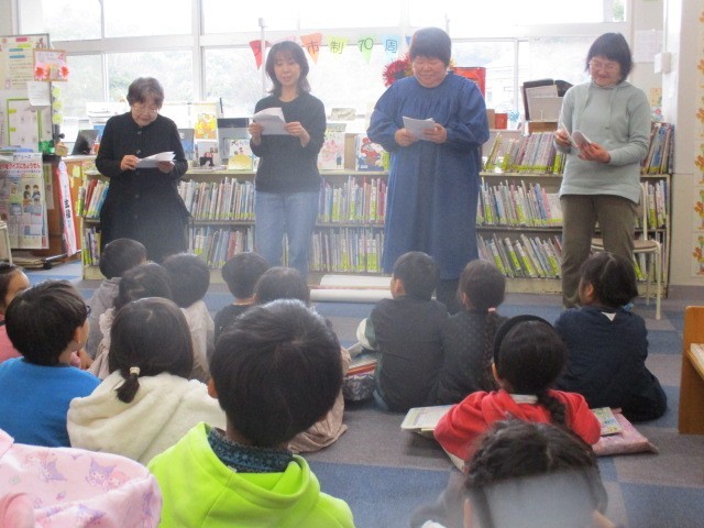 池野タイムに、図書館ボランティア「四つ葉のクローバー」のみなさんによる読み聞かせがありました。