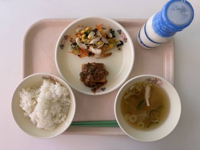 ・ごはん ・牛乳 ・田楽風厚揚げの肉味噌がけ ・白菜の塩昆布和え ・すまし汁
