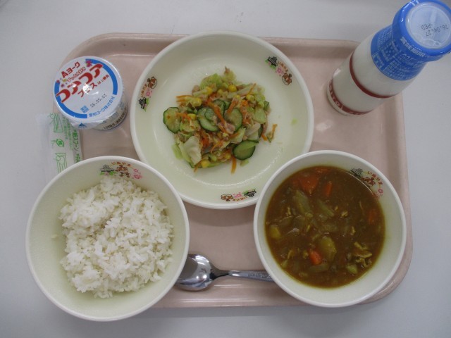 ・麦ごはん ・牛乳 ・ポークカレー ・コールスローサラダ ・ヨーグルト