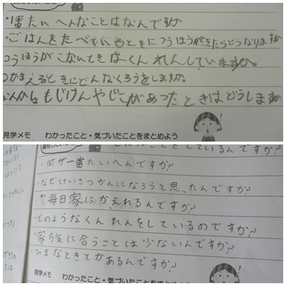 個人個人で質問を考え、それをクラスで交流しています。