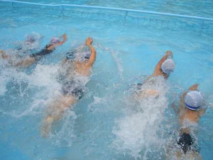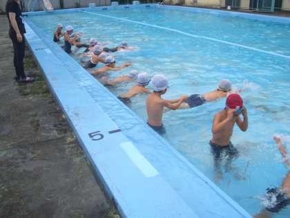 雨の合間をぬって、2年生がプールに入りました。2年生は水を怖がる子がおらず、みんなよく泳ぎます。これは、少人数でプールに入ることができる池野小の利点とも言えるでしょう。