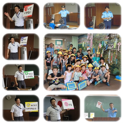 4年生が犬山警察署を見学させていただきました。「つみきおに」とは、防犯で大切なことの頭文字です。「ついて行かない」「みんなといつもいっしょ」「きちんと知らせる」「大声で助けを呼ぶ」「にげる」の5つです。交通安全には「ヘルシートマト」が大切で、「ヘルメット」「シートベルト」「とまる」「まもって信号」「道路では遊ばない」です。しっかり勉強できました。また、犬山警察署の皆さんが行っている訓練の様子を見せていただいたり、訓練体験の貴重な機会もいただきました。最後はパトカーで記念撮影もしました。いろいろなことを教えていただき、本当にありがとうございました。