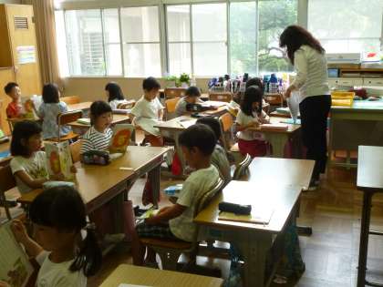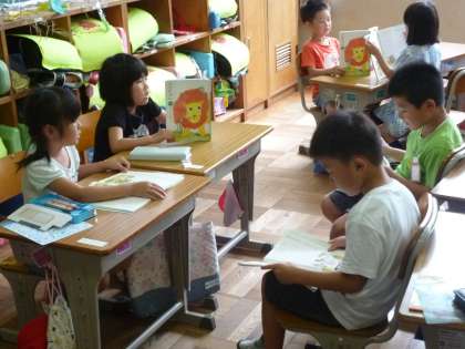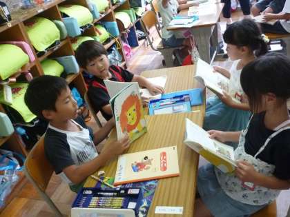 読む速さ、音量などを確認して、読み合い聞き合っています。