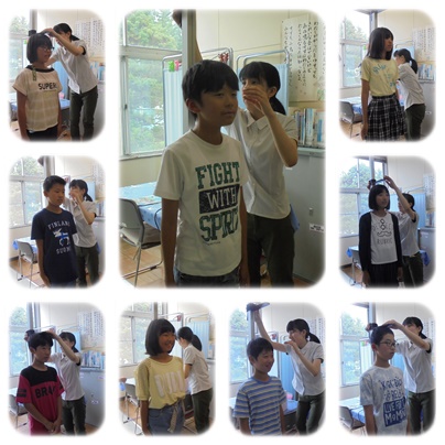 6年生が夏休み前の発育測定を行いました。4月から身長・体重の変化があった人もいます。「やった!背が伸びた」と喜んでいる人もいました。次に測定するのは9月です。夏休みの間に大きくなる人もいますね。