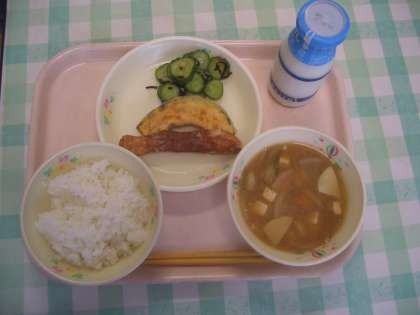 今日の「味噌けんちん汁」は具だくさんです。鶏肉・とうふ・かまぼこ・にんじん・ごぼう・大根・ねぎなどいろいろな食材が入っていました。
