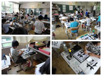 書写(毛筆)の授業の様子です。良い姿勢で学習にのぞむことができました。