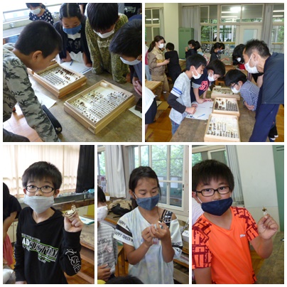 外部講師を招いて5年生の環境学習が行われました。座学(ミツバチの話・昆虫の標本観察・環境の話)を行った後、実際に外に出てビオトープの周りの自然について学習を深めました。