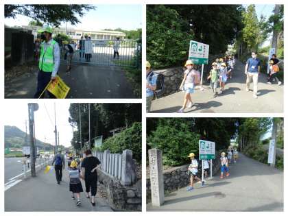 今日は風が爽やかに吹いています。児童の下校の様子です。