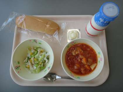 ・牛乳 ・ロールパン ・ミネストローネ