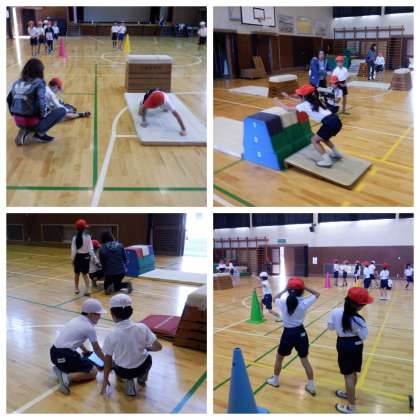 タブレットを活用した、体育の授業の様子です。