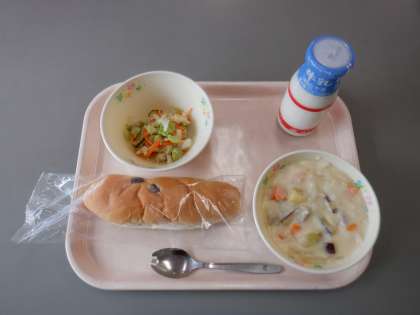 「さつまいも入りシチュー」の「さつまいも」は、中米が原産地だそうですが、今では世界中で作られています。でも生産量の90%はアジアで栽培されているそうです。日本でも全ての都道府県で作られているようですが、鹿児島県が圧倒的に多く、北海道や東北地方など寒い地域では生産量が少ないです。
