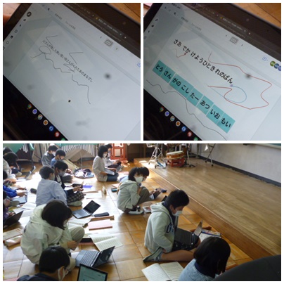 グループごとに、「曲の山」を、記号で表したり、線で表したり、いろいろ工夫していました。それを発表し合って、考えるのです。