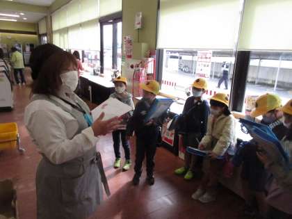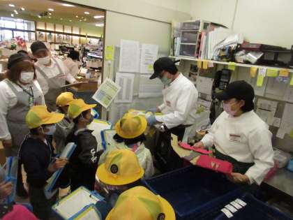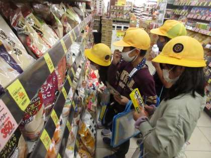 21日、社会の「店ではたらく人」の学習で、3年生がスーパーマーケットの見学に「MIKAWAYA犬山店」へ行きました。スーパーマーケットにたくさんのお客さんが来る秘密を探ろうと、真剣に見学する姿が見られました。案内してくださったお店の方のお話をしっかり聞きながら一生懸命メモしたり、お店や他のお客さんに迷惑がかからないようマナーを守って見学することができました。