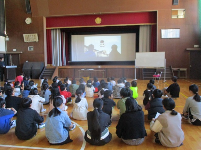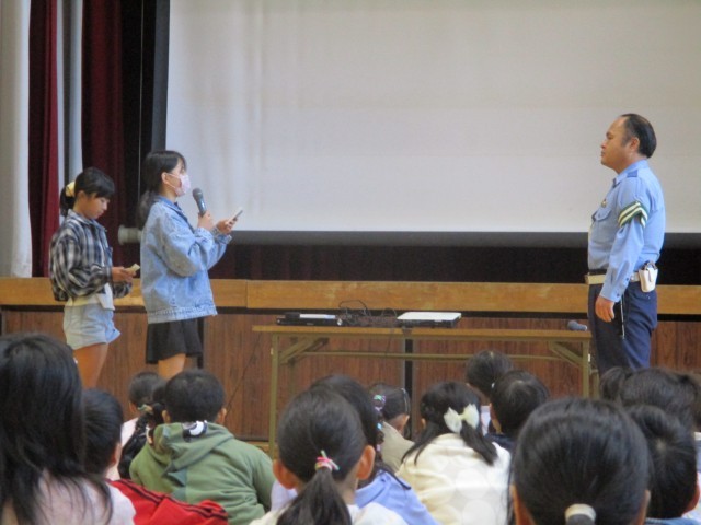 「交通安全の知ってる?守ってる?」の映像を見ながら、「止まれ」の標識の見方や、自転車での交差点の曲がり方など、クイズに答えながら正しい交通ルールについて学びました。児童からは、「交通安全の輪を広げていきたい」との感想が聞かれました。