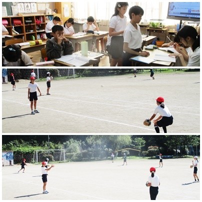 5年生は算数の小数や分数についてまとめの問題に取り組みました。6年生はティーボールです。キャッチボールの練習を行い、試合に備えています。