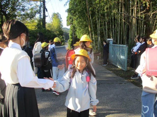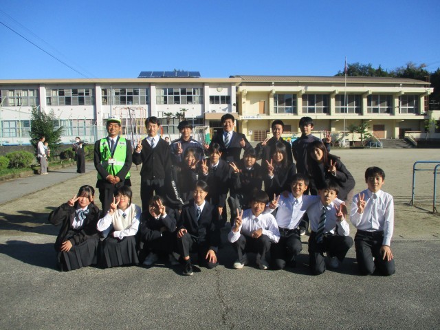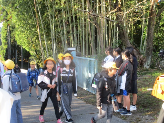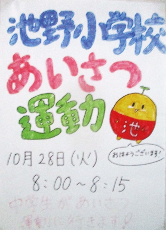 今朝は、東部中学校の先輩があいさつ運動に来てくれました。秋の青空の下、池野っ子たちもにこにこ笑顔であいさつを返し、気持ちのよい一日が始まりました。