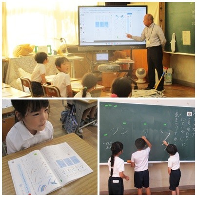 1年生の算数では、くり上がりの計算練習に取り組んでいます。プリントを活用して、くり返し行ってます。2年生の音楽では、夕やけ小やけの合唱やけんばんハーモニカの練習を行いました。