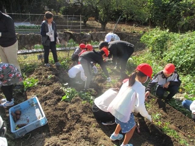 今日の池野タイムは、昨日に続いてサツマイモの収穫、イモ掘りです。協力班の2,4,6班が担当です。