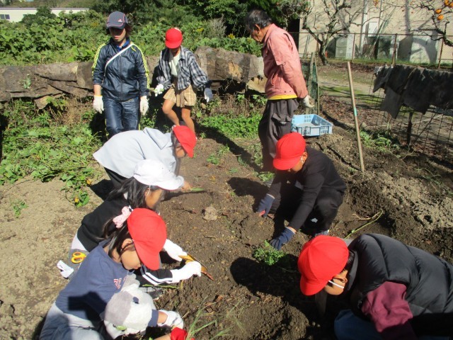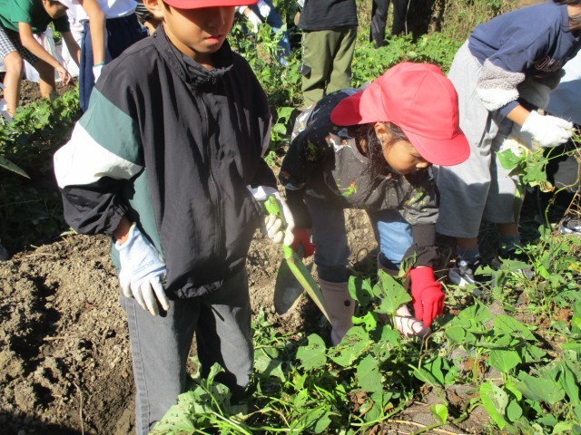 今日の池野タイムはサツマイモの収穫、イモ掘りです。協力班の1,3,5班が担当です。