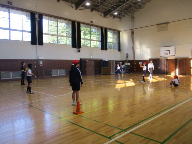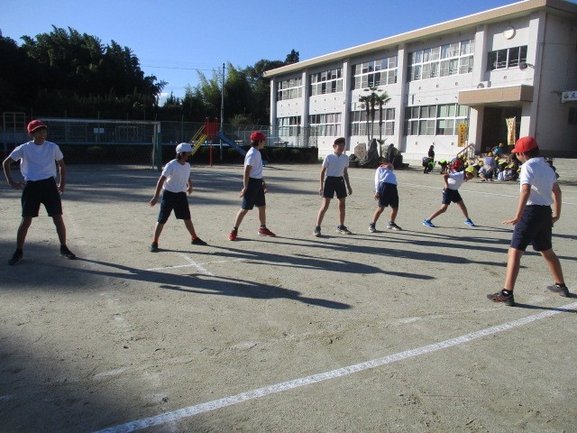 5年生は算数の小数や分数についてまとめの問題に取り組みました。6年生はティーボールです。キャッチボールの練習を行い、試合に備えています。