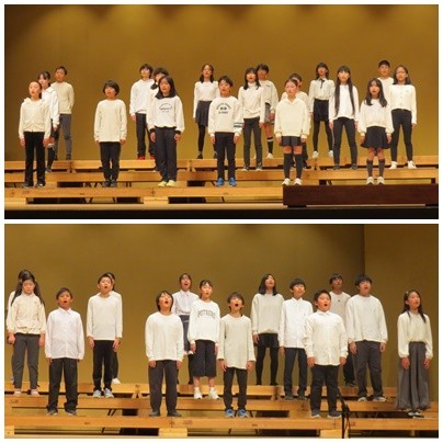 「石上げ祭り唄」では力強い歌声を響かせ、「ウイズ ユー スマイル」では美しいハーモニーを会場いっぱいに届けました。合同合唱では、「未来に向かって ~明日に輝く犬山の子どもたち~」を、参加した他校のみなさんと心を合わせて歌いました。