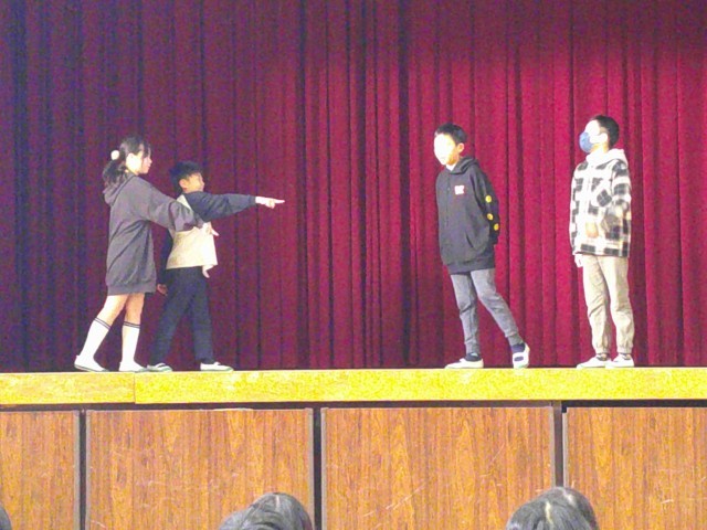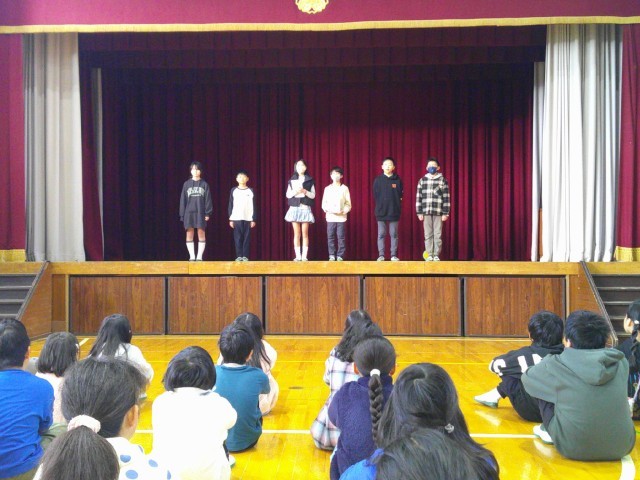 校長先生からはインフルエンザや感染症予防で大切なことのお話があり、代表委員会からは、12月9日(火)~11日(木)に行う赤い羽根募金の呼びかけを劇を交えて発表し、募金への協力を呼びかけました。
