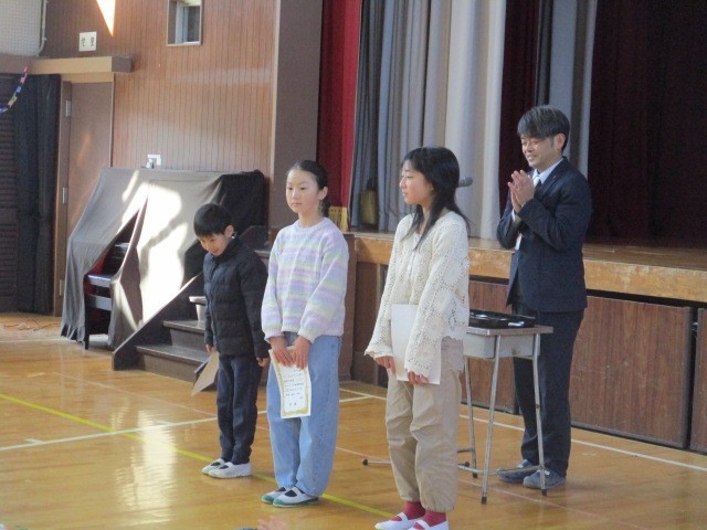 今日の朝会は保健・給食委員会による「さわやかウエンズデイ」の表彰と「読書画・読書感想文」の表彰がありました。みなさんの頑張りが認めてもらえる良い機会となりました。