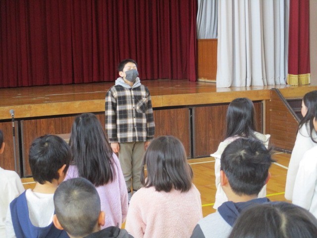 発表では、読書で一年間に500冊を読み切ったことや、運動会や学び発表会で力を発揮したこと、友達に感謝の思いを伝える子もいました。また、体育の授業でサッカーや跳び箱に挑戦したこと、筆算や図形など算数の学習に粘り強く取り組んだことなど、それぞれの努力や成長が具体的に語られました。