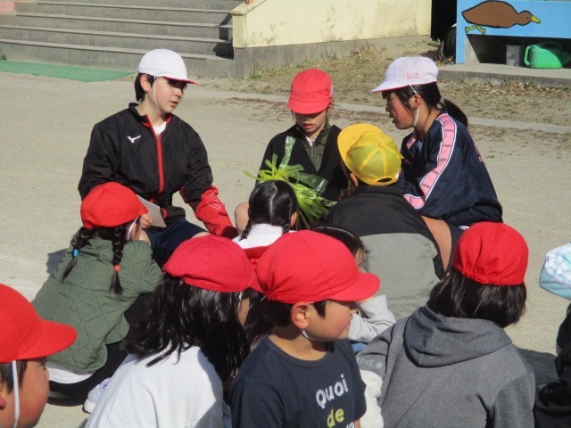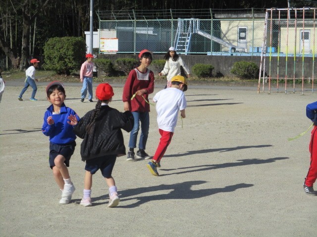 今日の朝の活動は協力班で過ごす、最後の「ぽかぽかタイム」で、しっぽとりを行いました。班で協力をしてビニルテープで作ったしっぽをたくさん集めます。取ったり、取られたり、大盛り上がりでした!