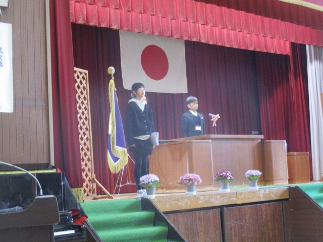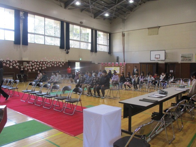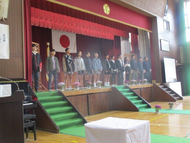 明日の卒業式に向けて、在校生が参観しての予行練習を行いました。在校生が見守り、緊張した雰囲気の中、一人一人が真剣に参加していました。