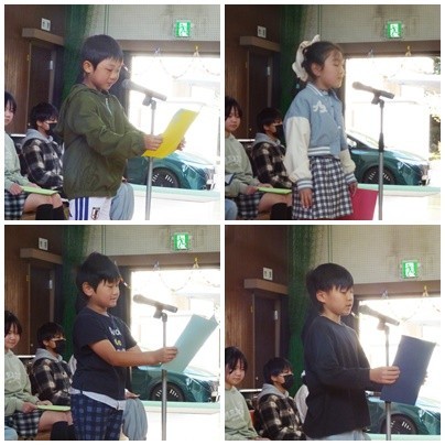発表では、読書で一年間に500冊を読み切ったことや、運動会や学び発表会で力を発揮したこと、友達に感謝の思いを伝える子もいました。また、体育の授業でサッカーや跳び箱に挑戦したこと、筆算や図形など算数の学習に粘り強く取り組んだことなど、それぞれの努力や成長が具体的に語られました。